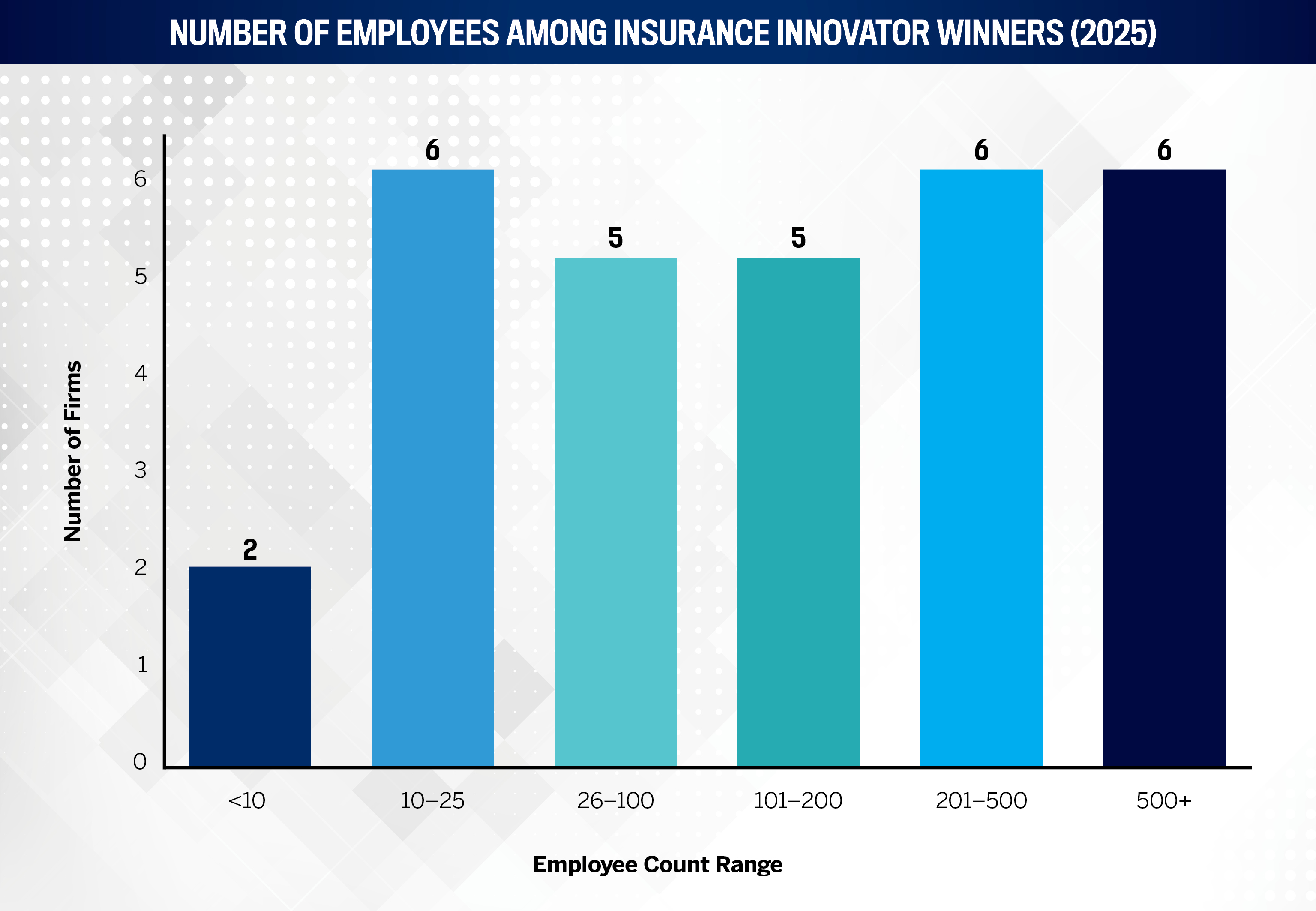 Innovation spans all company sizes: Award winners included boutique firms with fewer than 10 employees to major enterprises with over 500, with a near-even distribution showing that scale is no barrier to leadership.