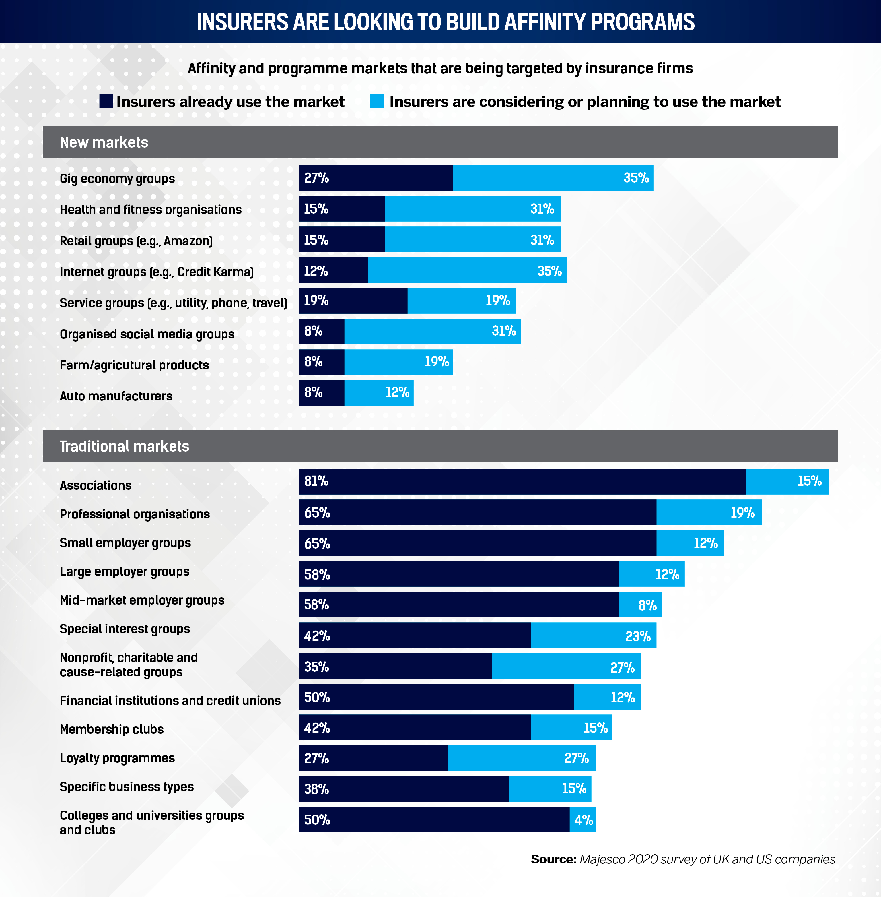 Insurers are expanding beyond traditional channels, partnering with gig-economy groups, e-tailers and other affinity markets to deliver fully digital, embedded insurance. Growing consumer demand means more revenue is expected to shift from conventional distribution to these platform-based models.