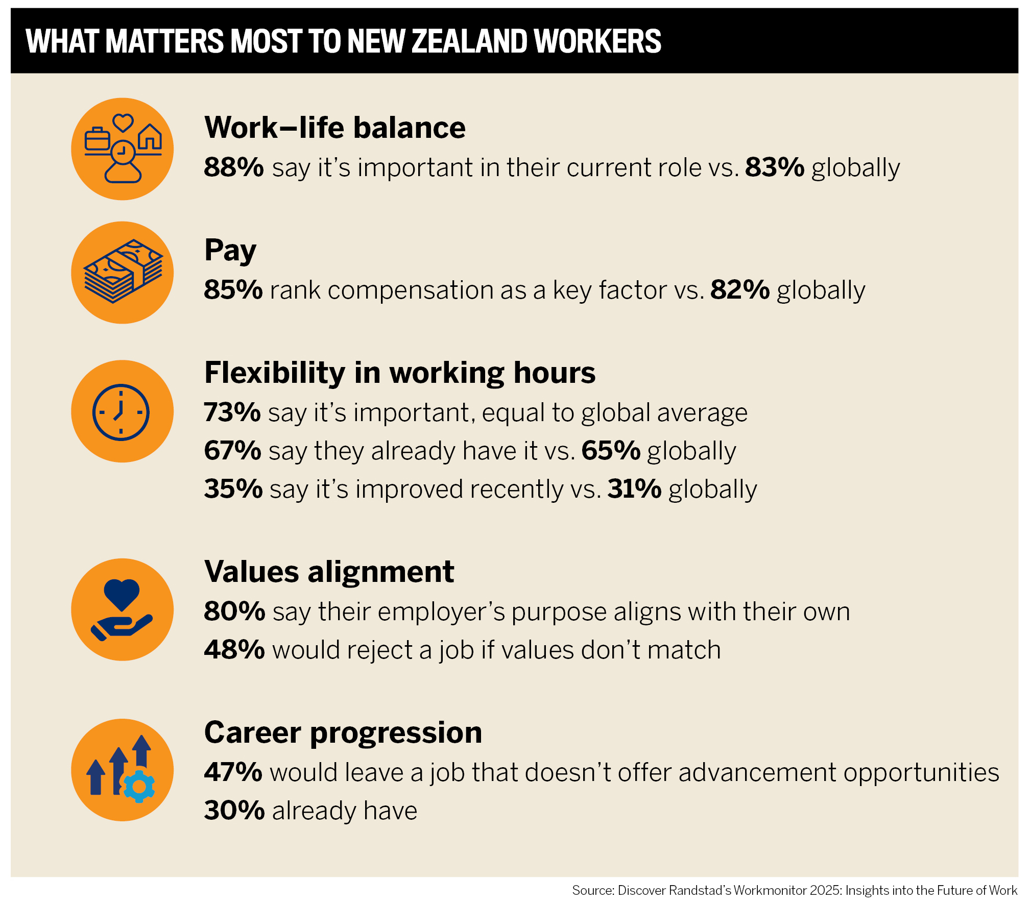 According to Randstad’s Workmonitor 2025 report, 67% of New Zealand-based workers said their jobs offered flexibility in working hours and 58% said they had location flexibility. Those numbers are on par with or slightly ahead of global averages. But what stands out is momentum, as 35% of employees said their flexibility had increased in the past six months, suggesting a shift that continues to benefit workers.