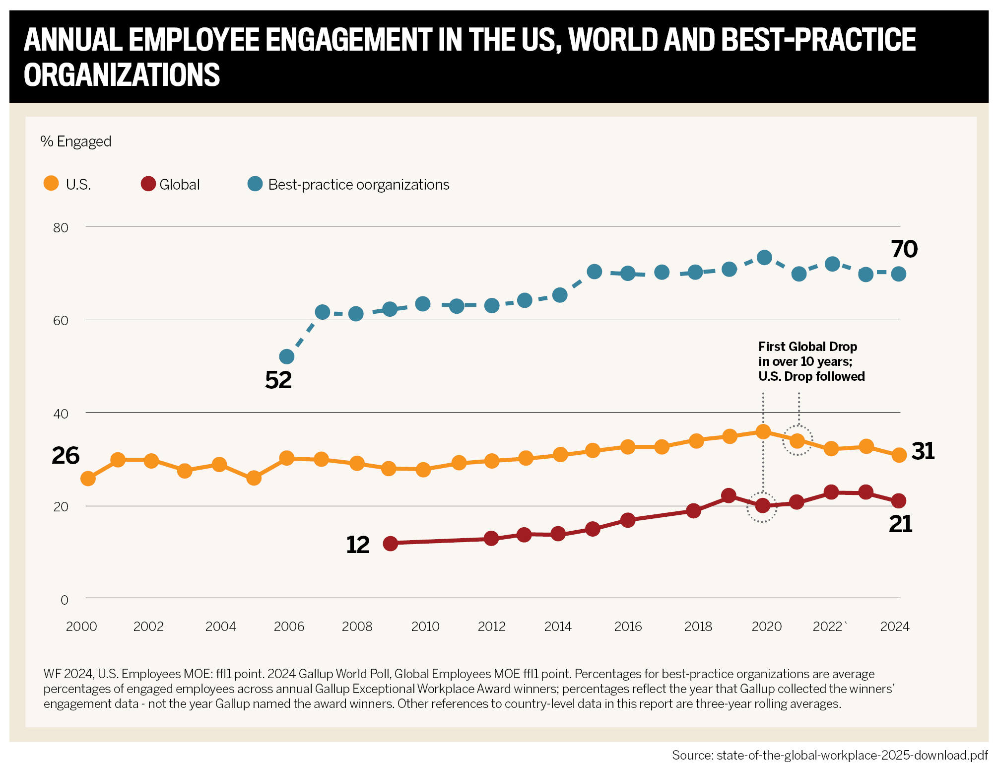 The impact of high employee engagement is staggering. According to Gallup’s 2025 State of the Global Workforce, if every workplace reached full engagement, it could add US$9.6 trillion in productivity to the global economy, the equivalent of a 9% bump in global GDP.