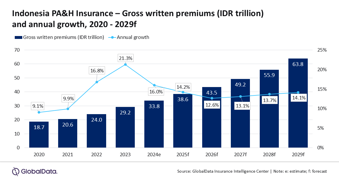 Indonesia’s personal accident and health (PA&H) insurance market is projected to exceed IDR63.8 trillion (US$4 billion) in gross written premiums (GWP) by 2029, according to data from analytics firm GlobalData.