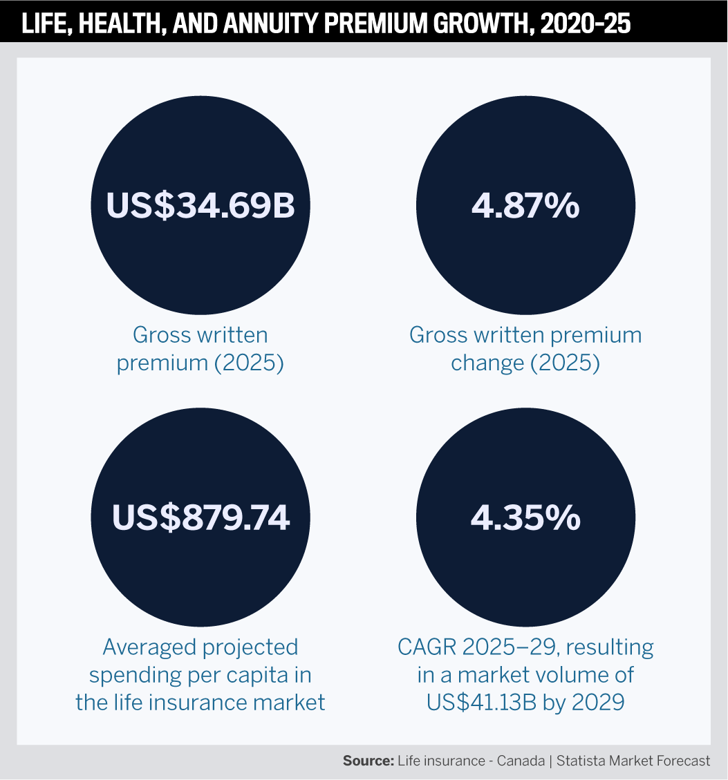 Coverage gaps: Surveys show 57 percent of Canadians feel underinsured, creating growth potential.