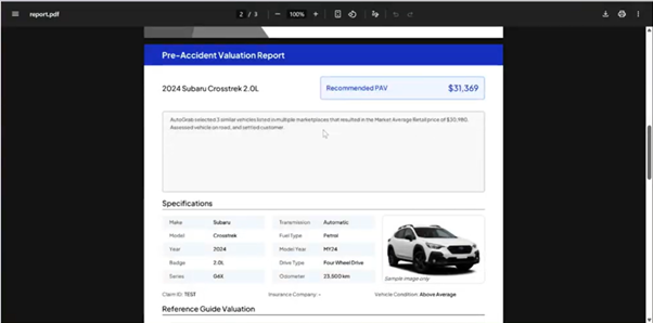 “If a customer is dissatisfied with a total loss claim’s value, the insurer can provide the AutoGrab PAV PDF report to show how the value was calculated,” he explains.