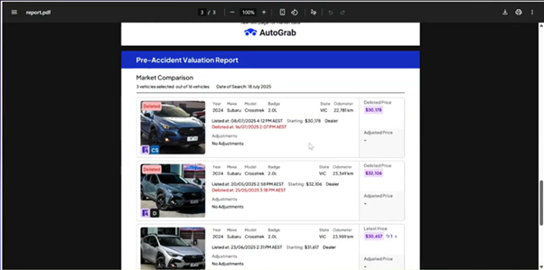 Settlement value complaints remain among the most frequent insurance disputes in Australia, according to AFCA. To support transparency, AutoGrab’s reports include comparable listings, price history, and state-specific market dynamics.